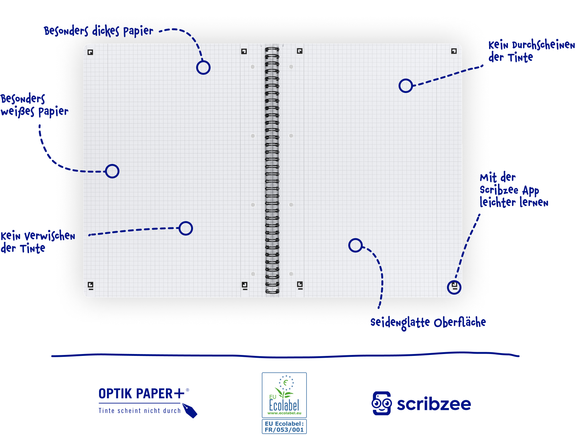 Optik Paper+® lässt die Tinte nicht durchscheinen, ist perfekt weiß, noch dicker und hat eine seidenglatte Oberfläche für leichtes schreiben.